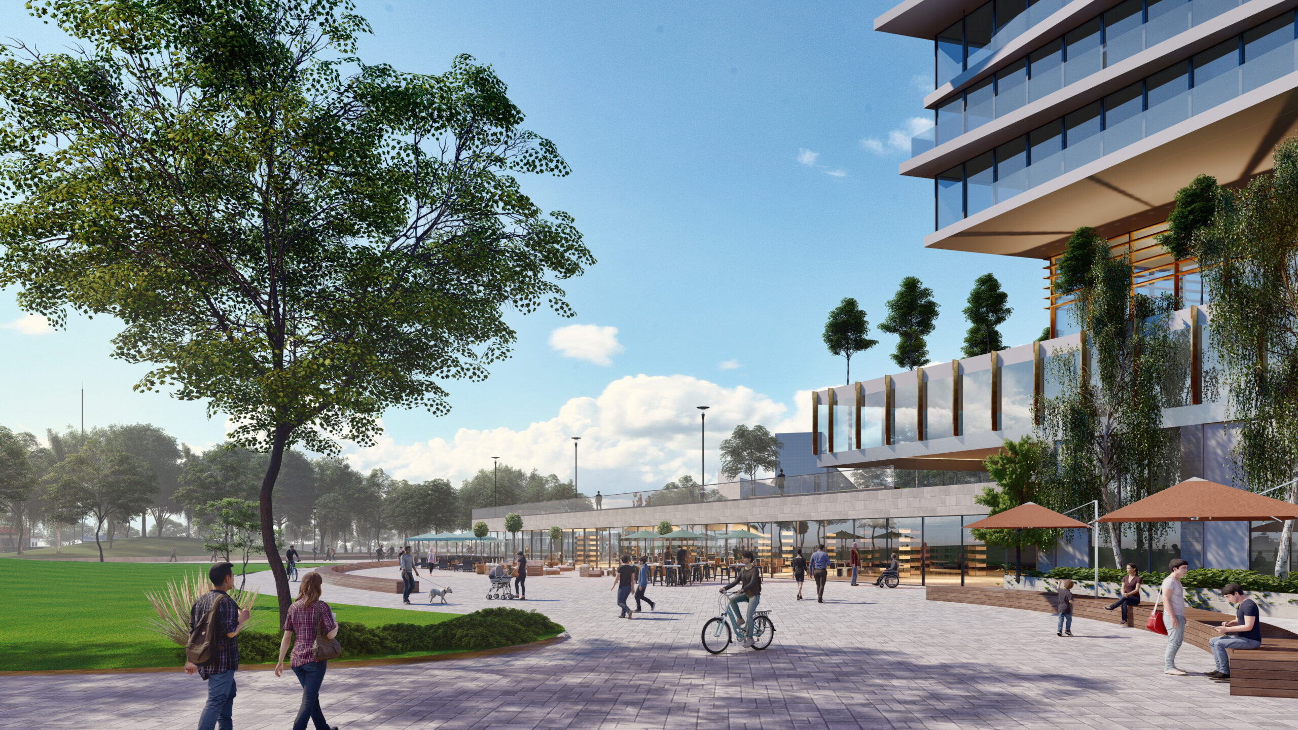 Our concept sees the stadium as a central part of the revitalized downtown through the incorporation of several mixed-use development sites. Various uses for this development as incorporated with the stadium would include approximately 2.7 acres of plaza / open space, 7,500 SF of retail, 7,500 SF of restaurants, and a 300-key hotel directly adjacent to the stadium.